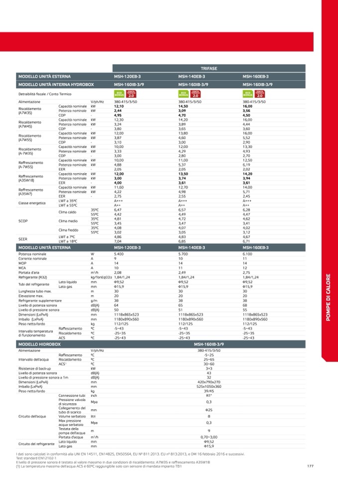 I dati sono calcolati in conformità alla UNI EN 14511, EN14825, EN50564, EU N° 811:2013. EU n° 813:2013, e DM 16 febbraio 2016 e successivi.