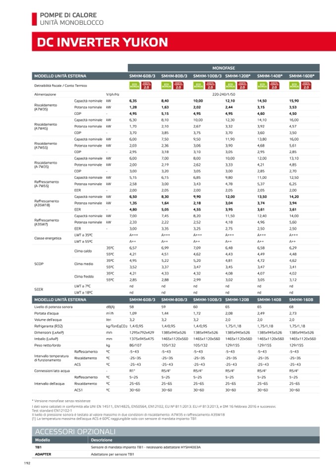 I dati sono calcolati in conformità alla UNI EN 14511, EN14825, EN50564, EN12102, EU N° 811:2013. EU n° 813:2013, e DM 16 febbraio 2016 e successivi.