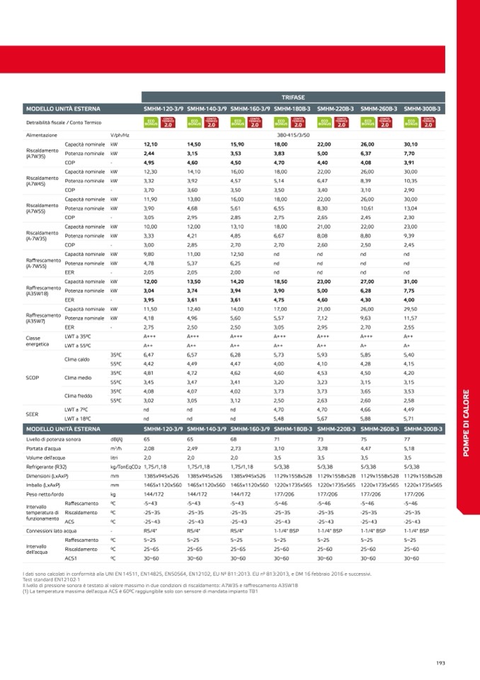I dati sono calcolati in conformità alla UNI EN 14511, EN14825, EN50564, EN12102, EU N° 811:2013. EU n° 813:2013, e DM 16 febbraio 2016 e successivi.