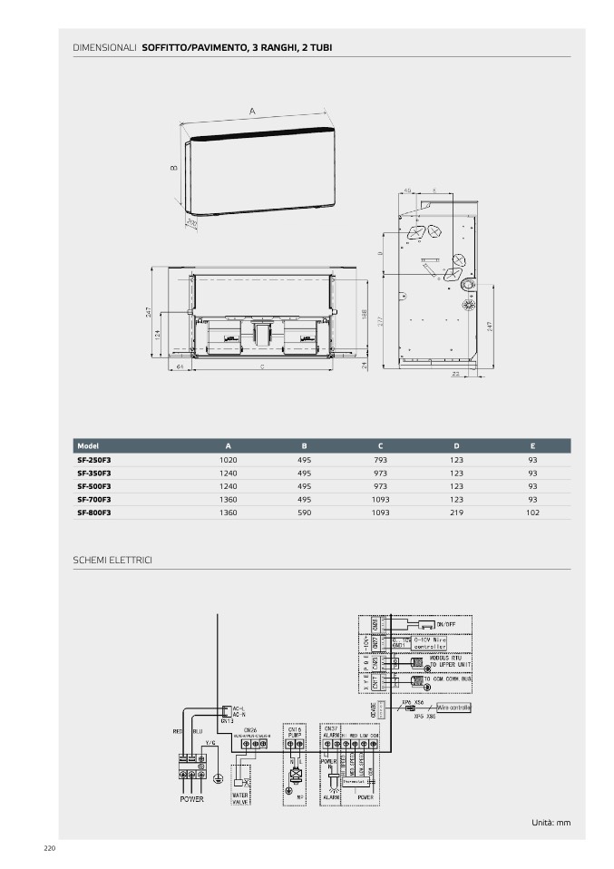 DIMENSIONALI SOFFITTO/PAVIMENTO, 3 RANGHI, 2 TUBI