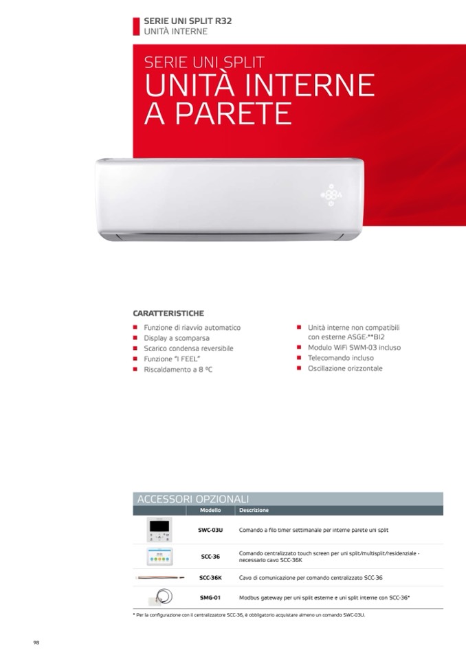 * Per la configurazione con il centralizzatore SCC-36, è obbligatorio acquistare almeno un comando SWC-03U.