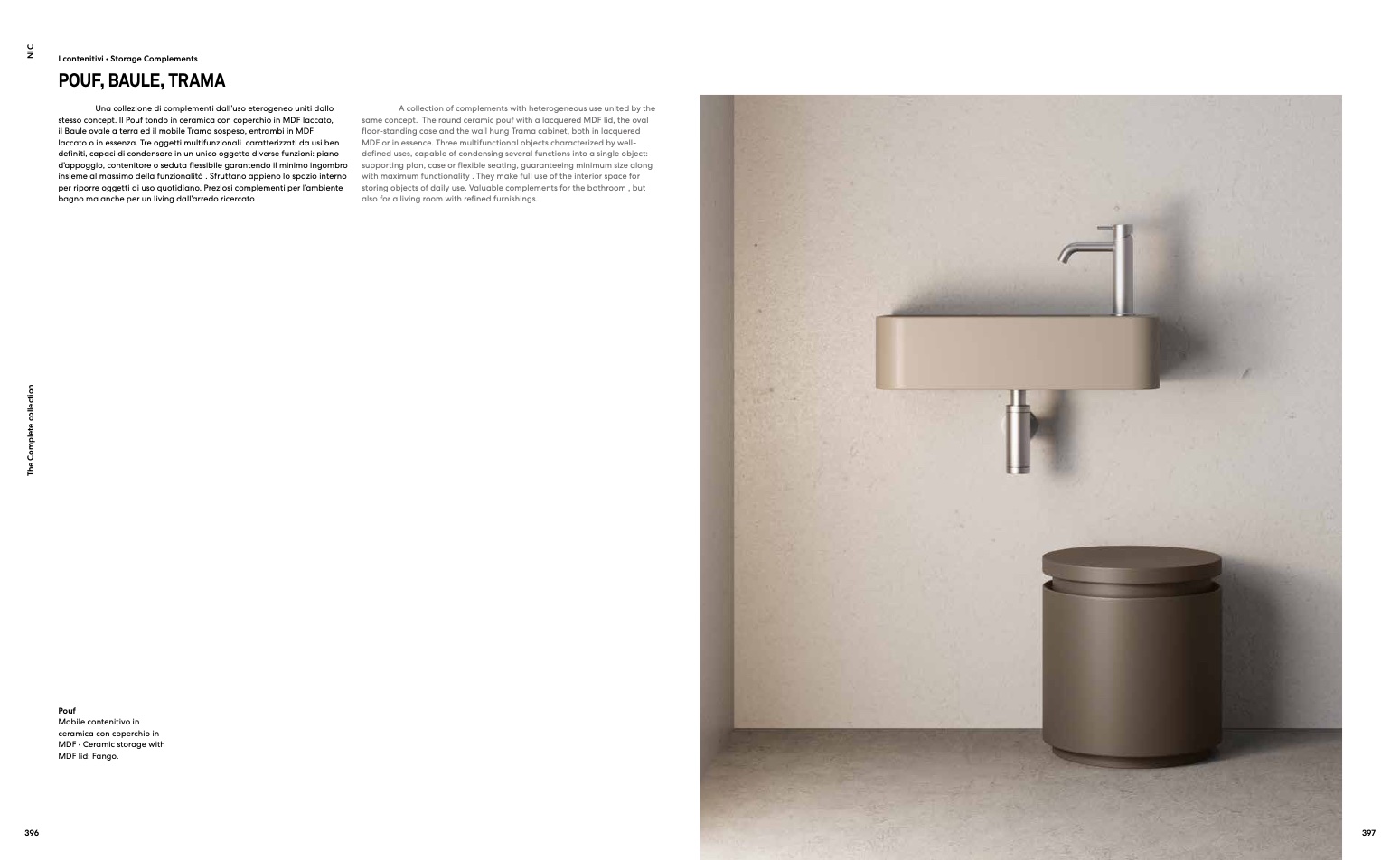 floor-standing case and the wall hung Trama cabinet, both in lacquered