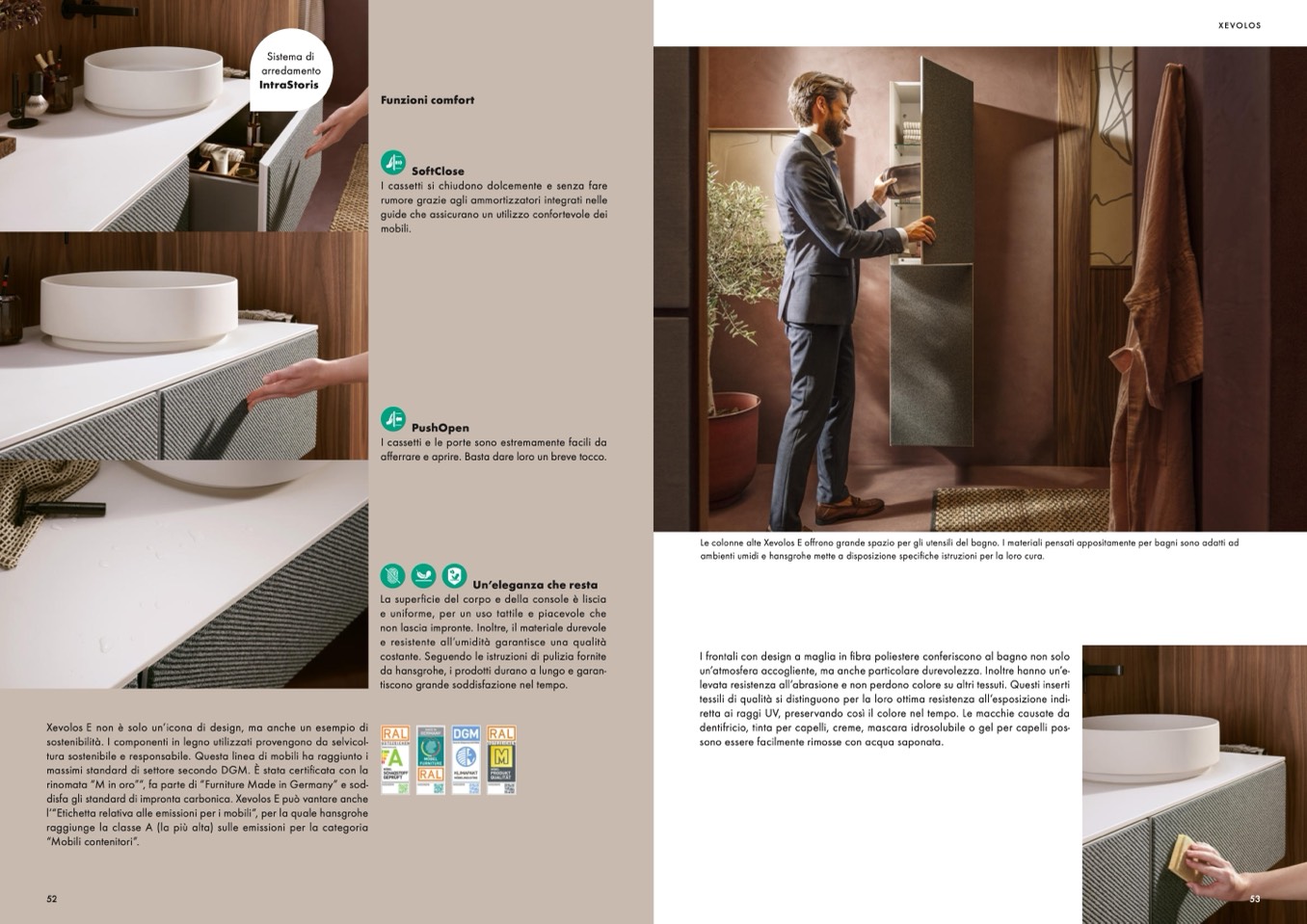 Le colonne alte Xevolos E offrono grande spazio per gli utensili del bagno. I materiali pensati appositamente per bagni sono adatti ad