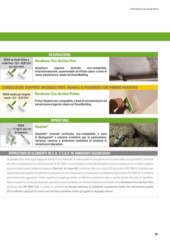 tutte le superfici, anche già decorate, potranno essere protette con finiture elastomeriche della linea Kerakover Eco Acrilex Flex,