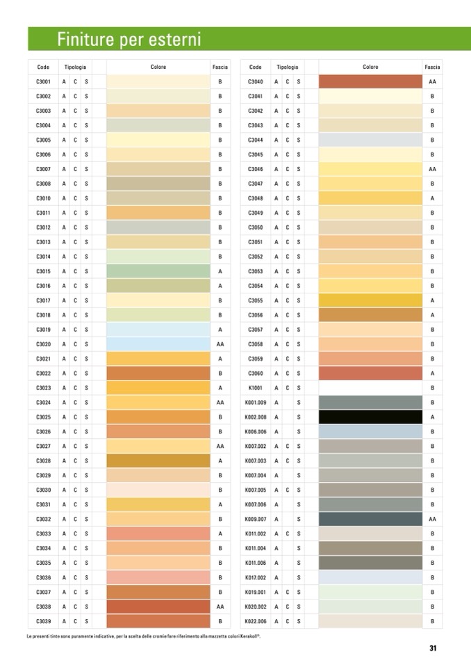 Le presenti tinte sono puramente indicative, per la scelta delle cromie fare riferimento alla mazzetta colori Kerakoll