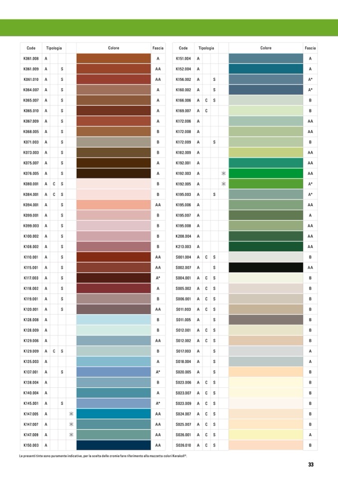 Le presenti tinte sono puramente indicative, per la scelta delle cromie fare riferimento alla mazzetta colori Kerakoll