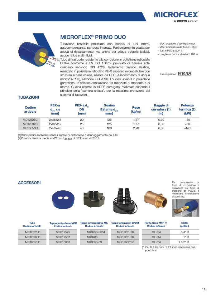 (*) Per le tubazioni DUO sono necessari due
