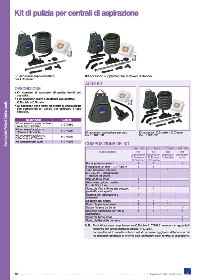 kit accessori contenuti all’interno delle confezioni delle centrali di aspirazione.