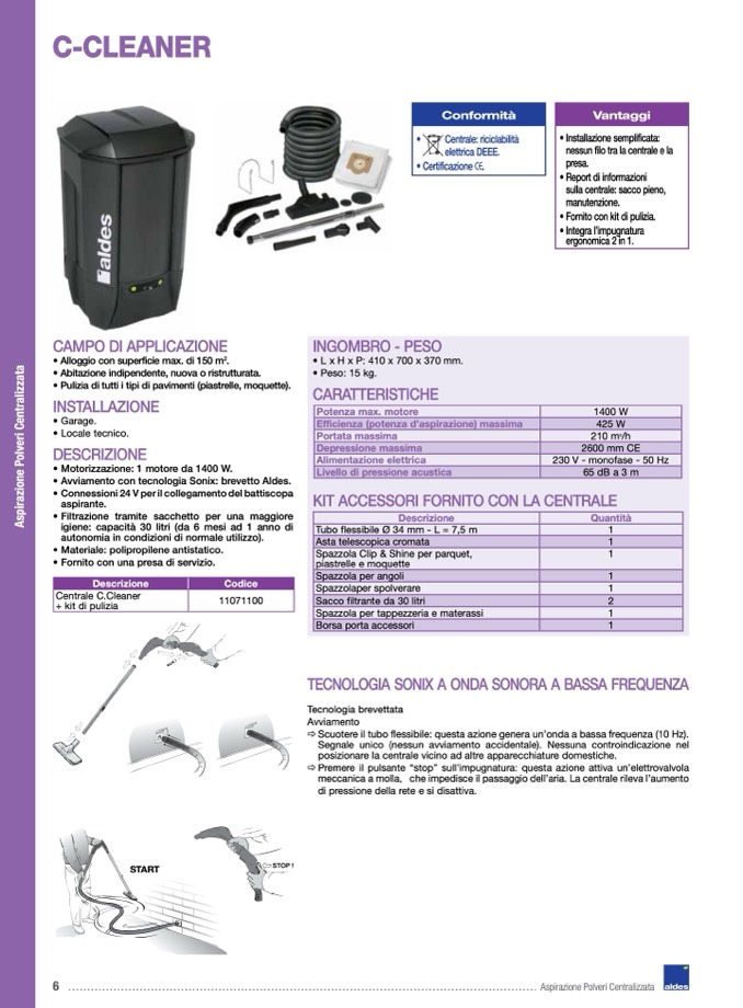 • Avviamento con tecnologia Sonix: brevetto Aldes.