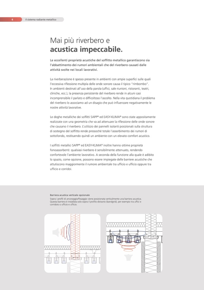 di sostegno del soffitto rende pressoché totale l’assorbimento dei rumori di