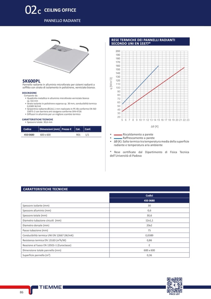 Pannello radiante in alluminio microforato per sistemi radianti a