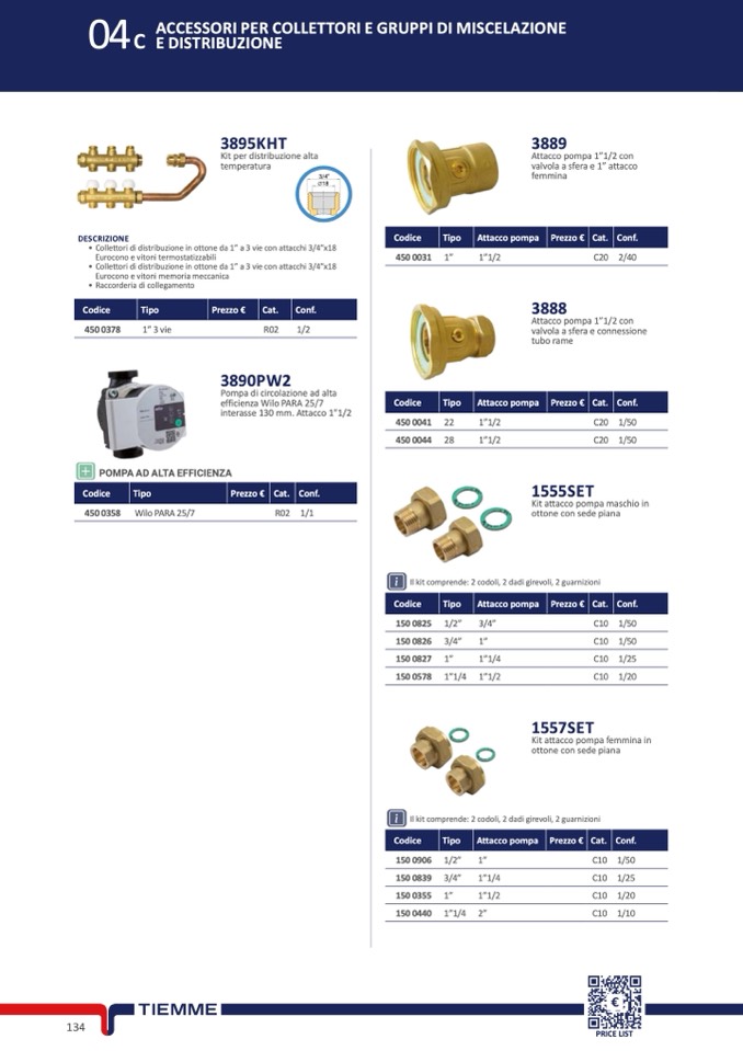 • Collettori di distribuzione in ottone da 1” a 3 vie con attacchi 3/4”x18