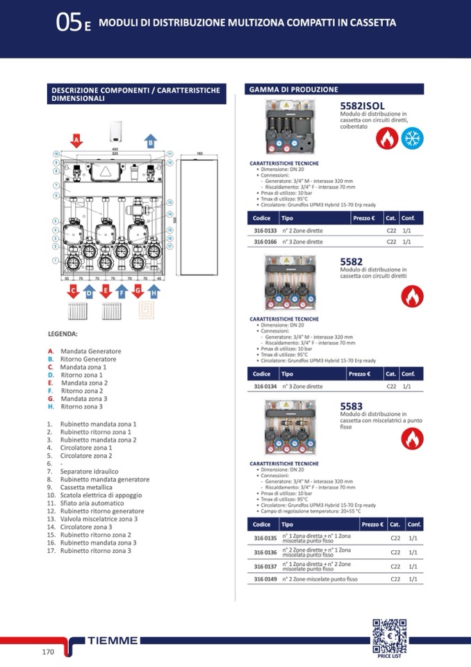 - Riscaldamento: 3/4” F - interasse 70 mm