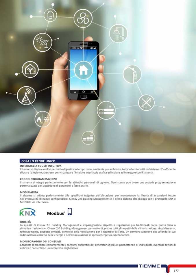 à di nuove configurazioni. Climav 2.0 Building Management è il primo sistema che dialoga con il protocollo KNX e