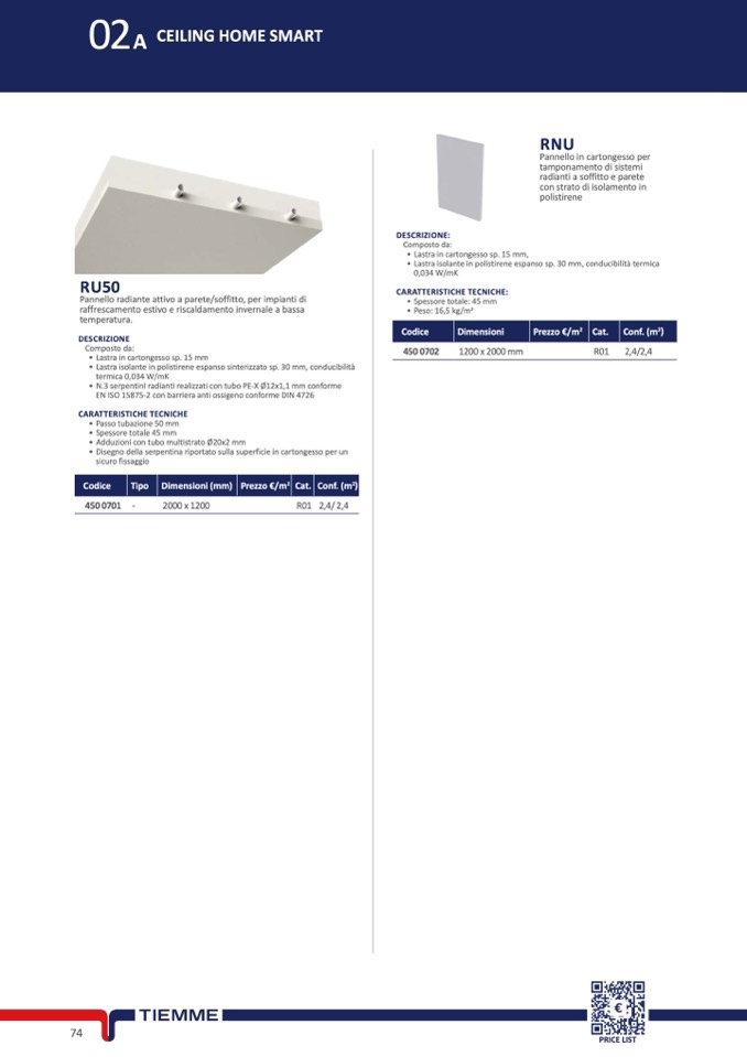 Pannello radiante attivo a parete/soffitto, per impianti di
