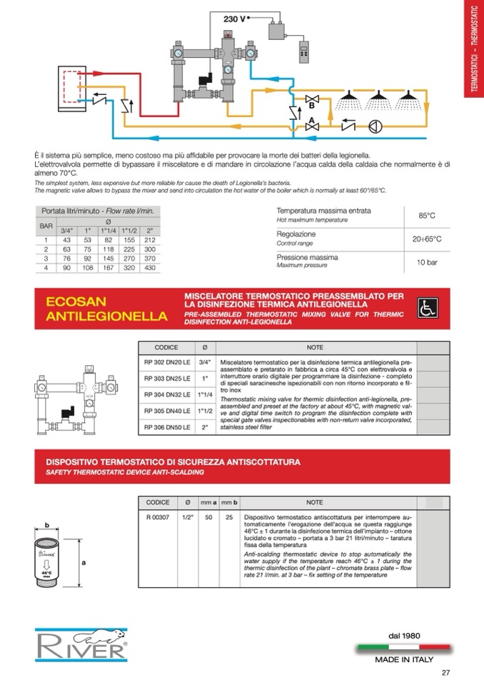 Miscelatore termostatico per la disinfezione termica antilegionella pre-