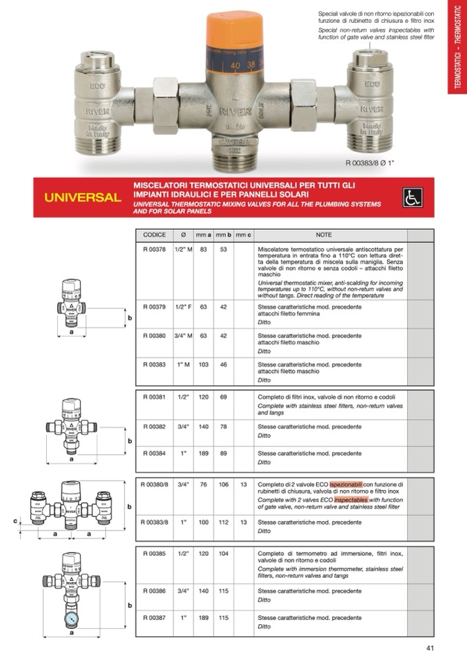 UNIVERSAL THERMOSTATIC MIXING VALVES FOR ALL THE PLUMBING SYSTEMS