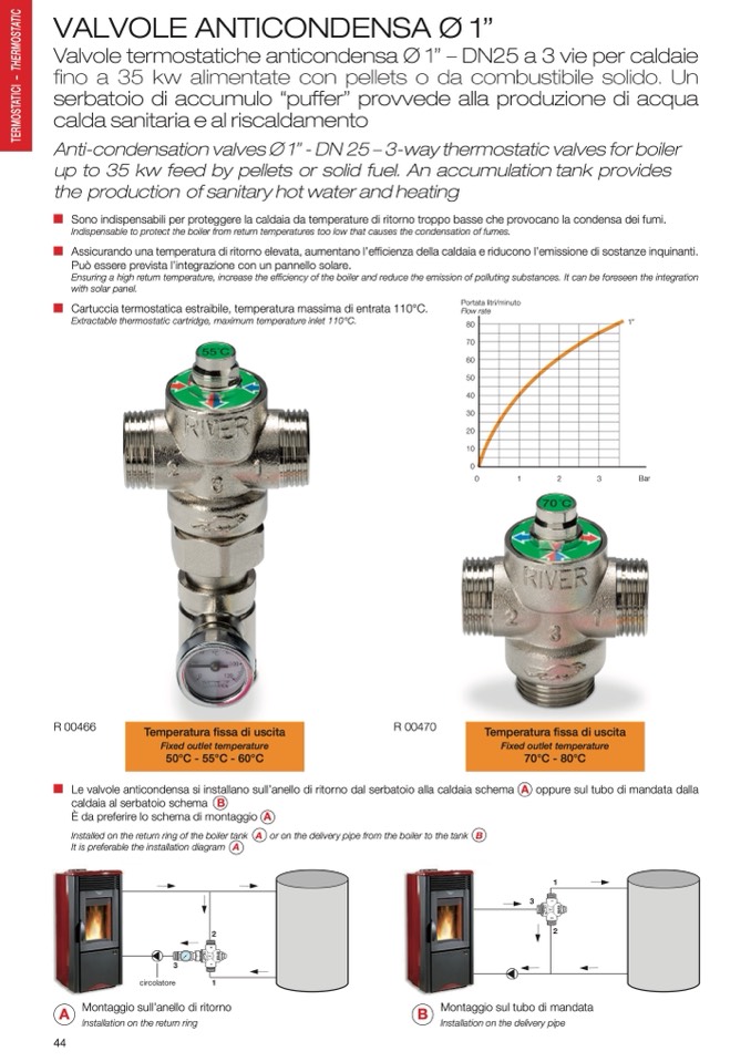 Indispensable to protect the boiler from return temperatures too low that causes the condensation of fumes.
