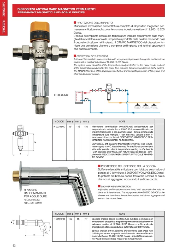 Miscelatore termostatico antiscottatura completo di dispositivo magnetico per-