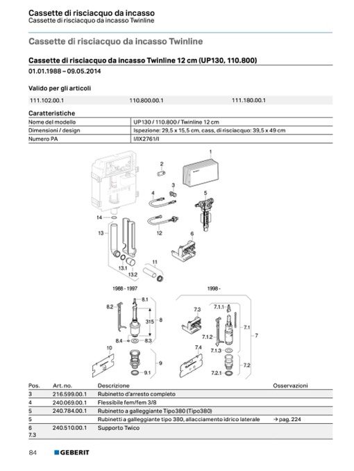 Cassette di risciacquo da incasso Twinline 12 cm (UP130, 110.800)