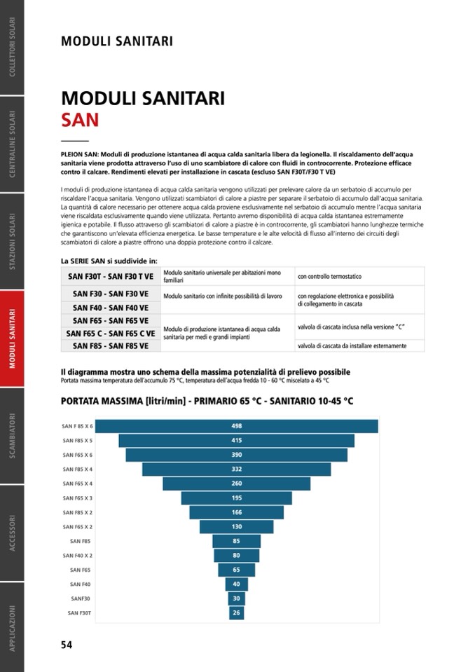 contro il calcare. Rendimenti elevati per installazione in cascata (escluso SAN F30T/F30 T VE)