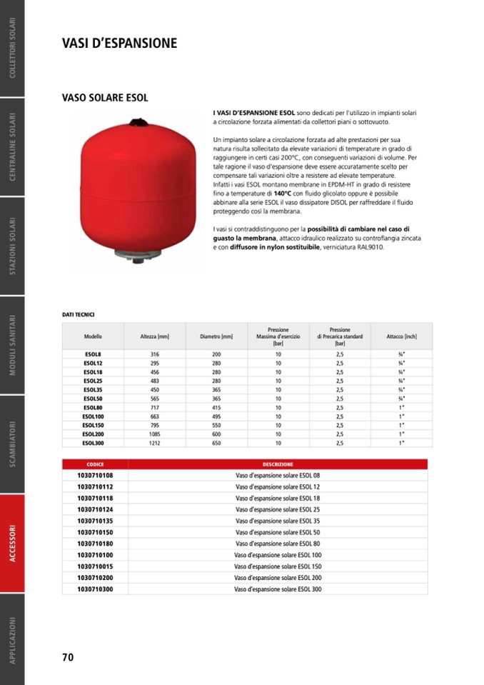 I VASI D’ESPANSIONE ESOL sono dedicati per l’utilizzo in impianti solari