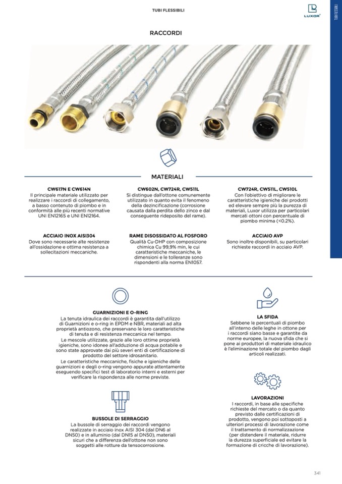 DN50) e in alluminio (dal DN15 al DN50), materiali