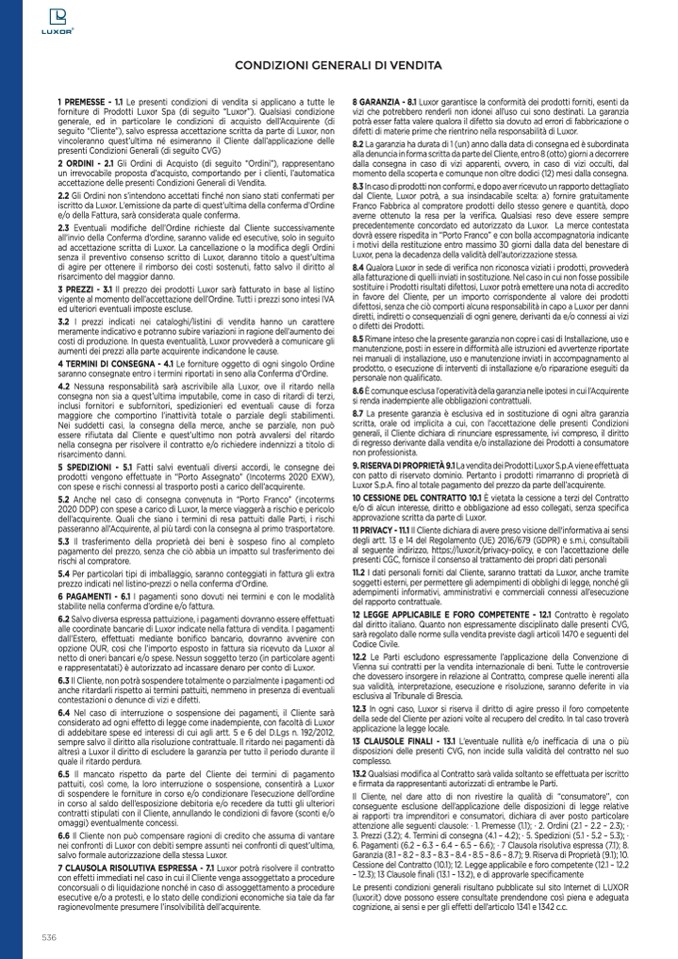 8 GARANZIA - 8.1 Luxor garantisce la conformit
