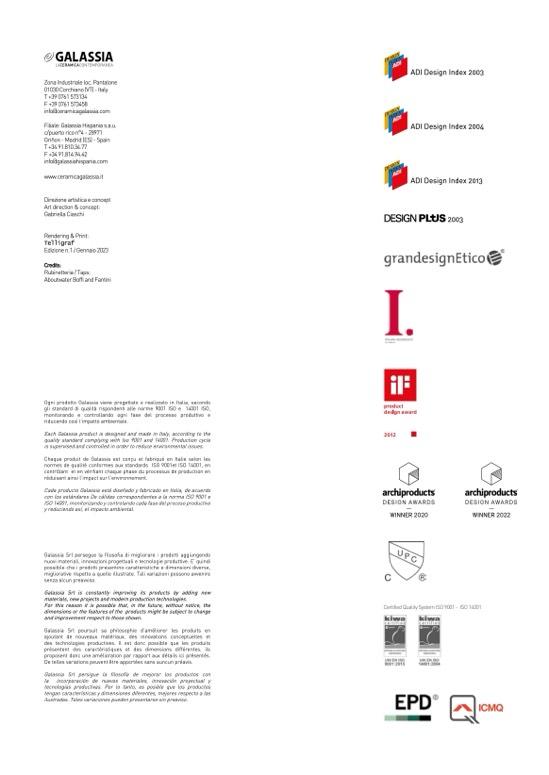 Each Galassia product is designed and made in Italy, according to the