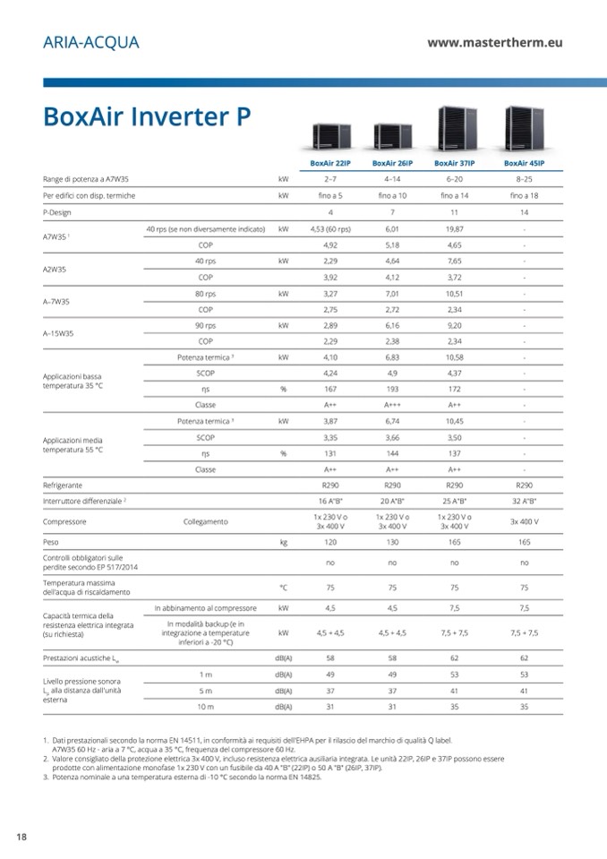 1. Dati prestazionali secondo la norma EN 14511, in conformità ai requisiti dell'EHPA per il rilascio del marchio di qualità Q label.