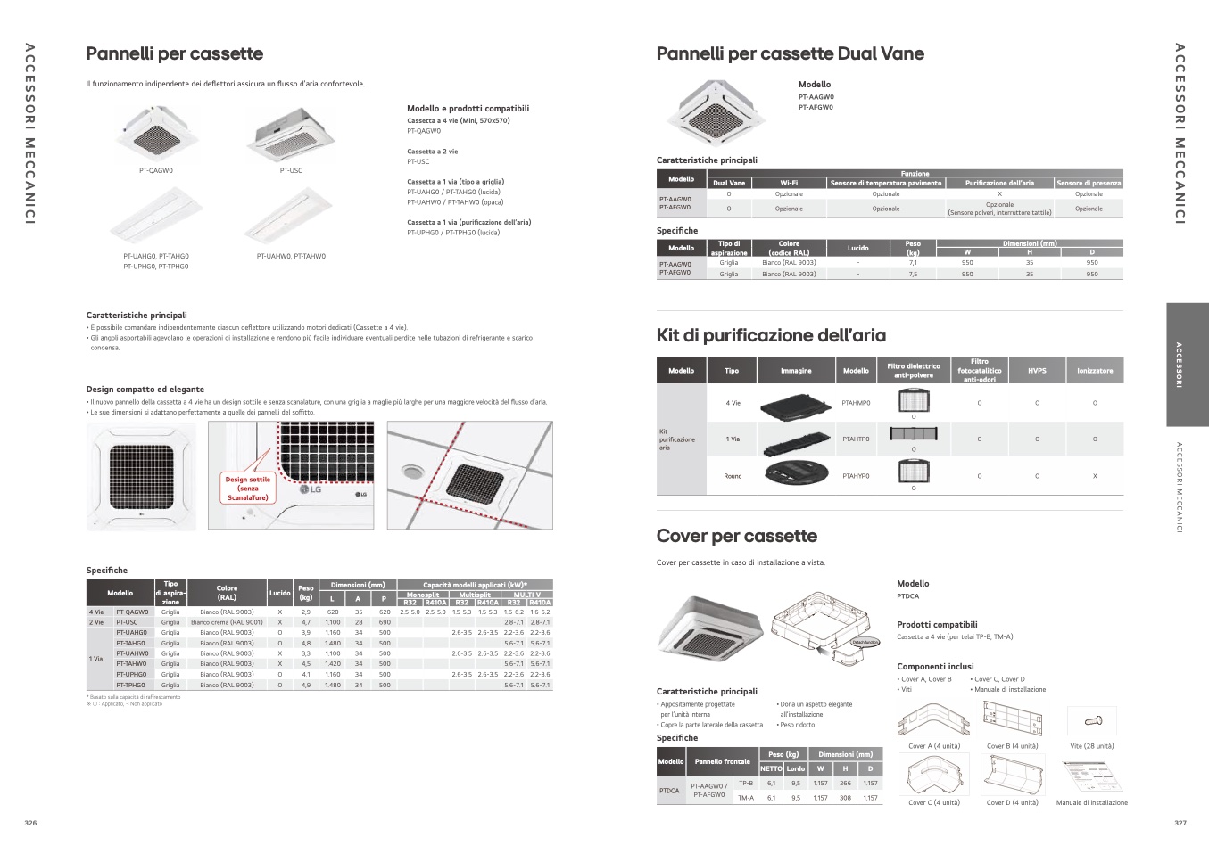 • Il nuovo pannello della cassetta a 4 vie ha un design sottile e senza scanalature, con una griglia a maglie pi