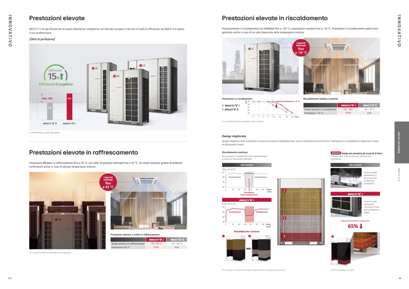 Design migliorato dello scambiatore esterno con sezioni indipendenti per ridurre eventuali accumuli di brina. Prestazione in riscaldamento migliorata e tempi