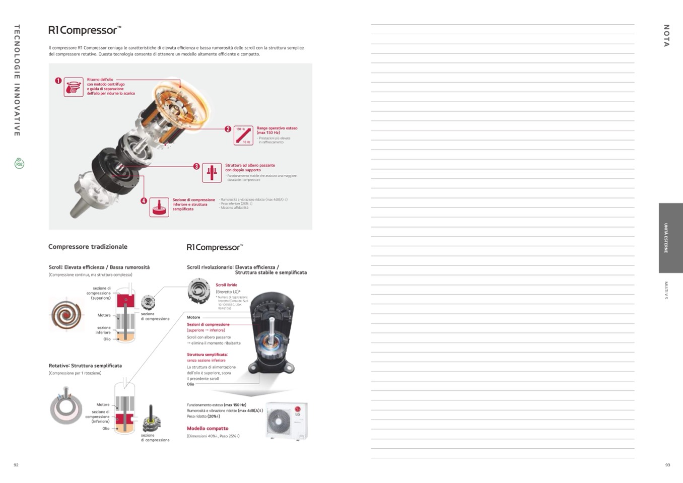 del compressore rotativo. Questa tecnologia consente di ottenere un modello altamente e