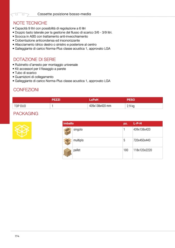 • Doppio tasto laterale per la gestione del flusso di scarico 3/6 - 3/9 litri.
