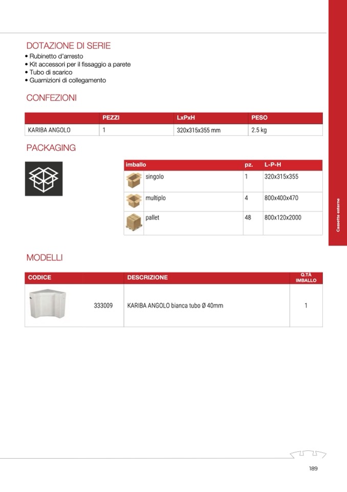 KARIBA ANGOLO bianca tubo Ø 40mm