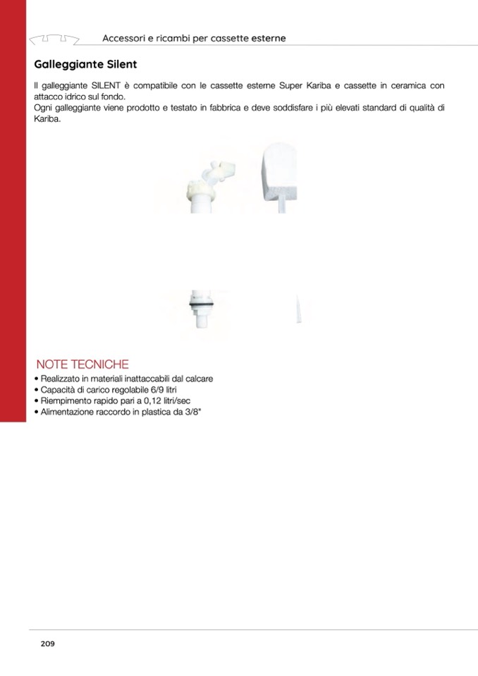 Il galleggiante SILENT è compatibile con le cassette esterne Super Kariba e cassette in ceramica con