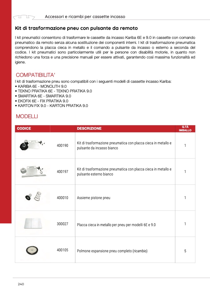I kit di trasformazione pneu sono compatibili con i seguenti modelli di cassette incasso Kariba: