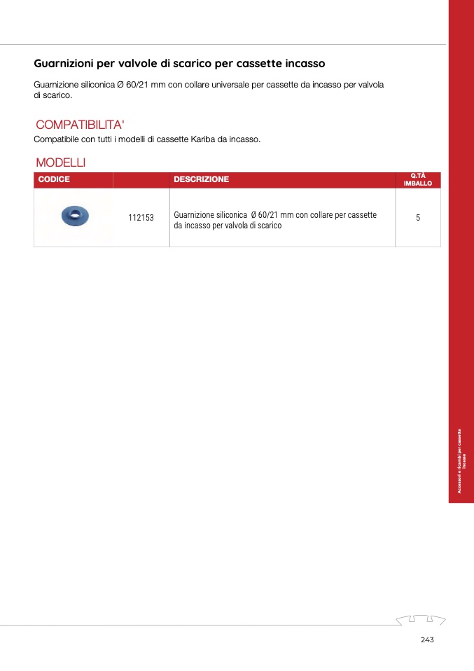 Guarnizioni per valvole di scarico per cassette incasso