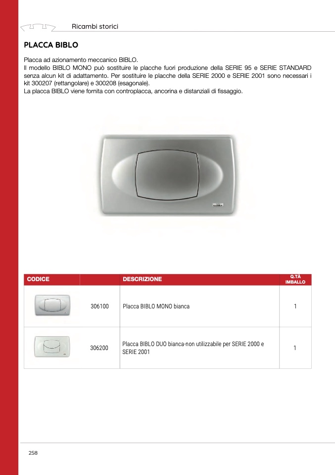 Placca ad azionamento meccanico BIBLO.