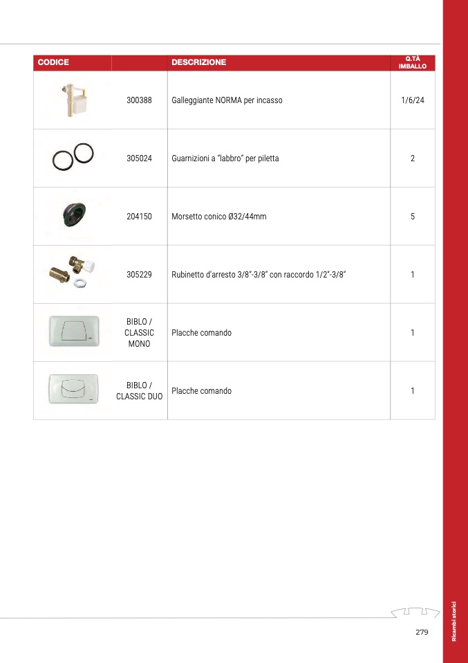 Galleggiante NORMA per incasso