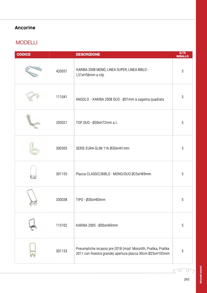 Pneumatiche incasso pre-2018 (mod. Monolith, Pratika, Pratika