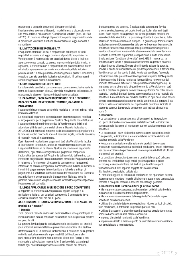 sito www.kariba.it nella sezione “Condizioni di vendita” (mod. all.12Ce