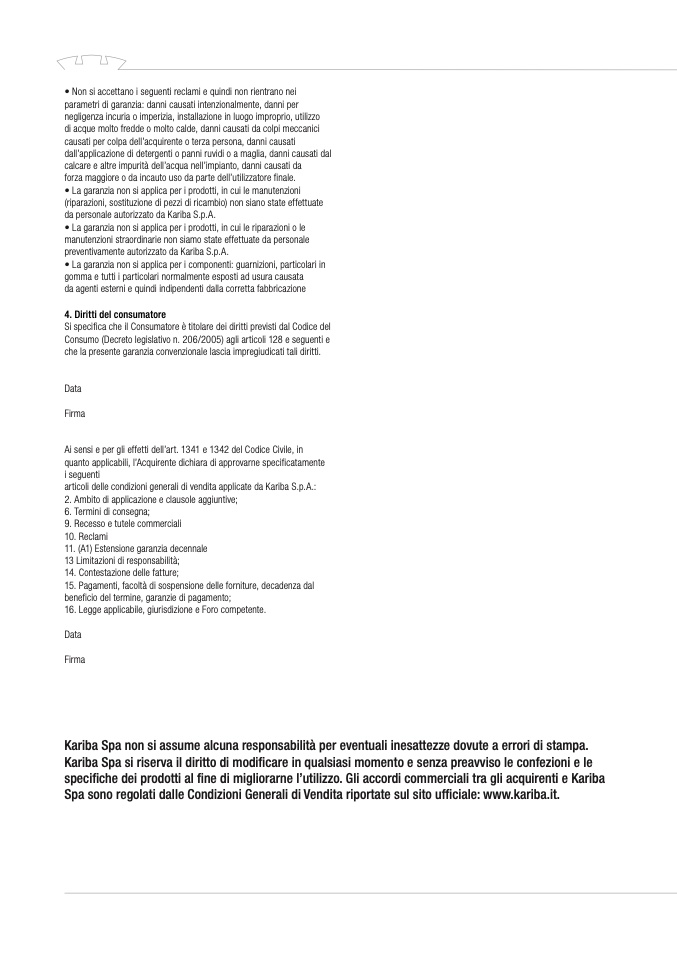 Spa sono regolati dalle Condizioni Generali di Vendita riportate sul sito ufficiale: www.kariba.it.