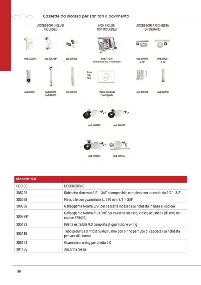 Cassette da incasso per sanitari a pavimento