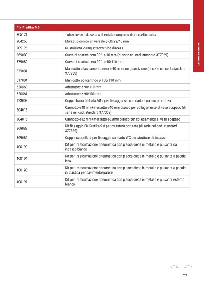 Kit fissaggio Fix Pratika 9.0 per muratura portante (di serie nel cod. standard
