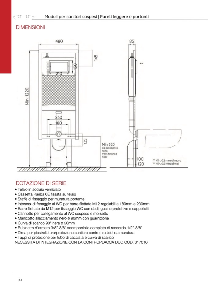 NECESSITA DI INTEGRAZIONE CON LA CONTROPLACCA DUO COD. 317010