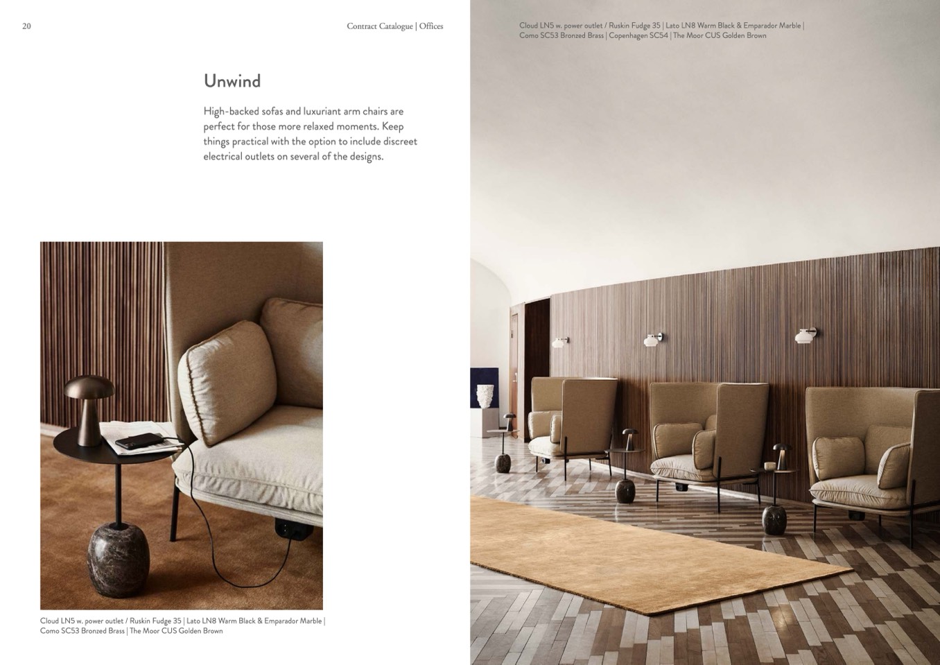 Cloud LN5 w. power outlet / Ruskin Fudge 35 | Lato LN8 Warm Black & Emparador Marble |