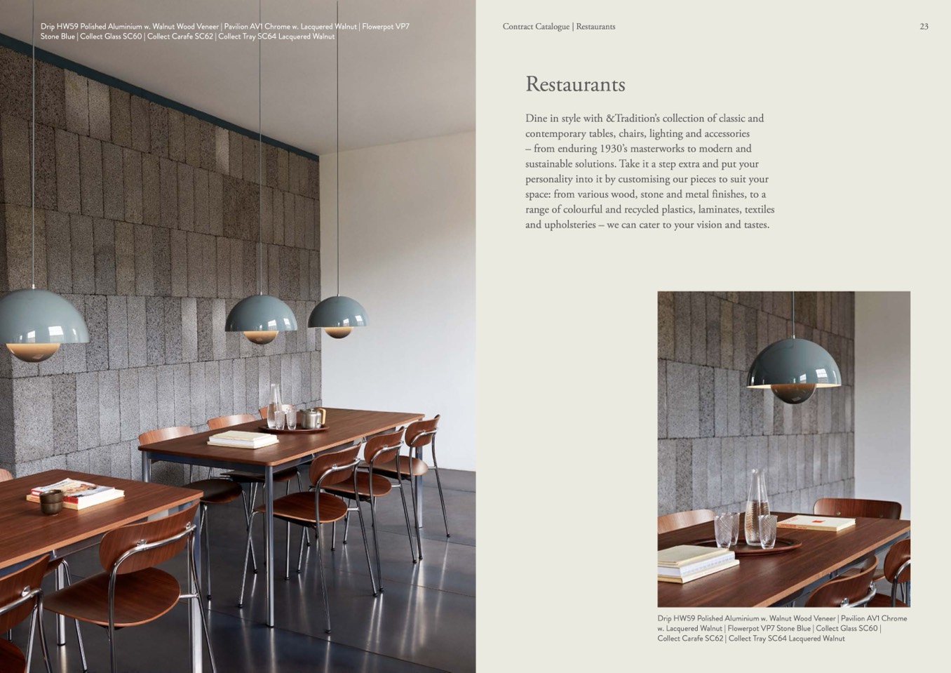 Drip HW59 Polished Aluminium w. Walnut Wood Veneer | Pavilion AV1 Chrome w. Lacquered Walnut | Flowerpot VP7