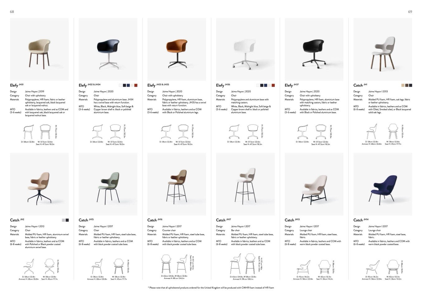 * Please note that all upholstered products ordered for the United Kingdom will be produced with CMHR foam instead of HR foam