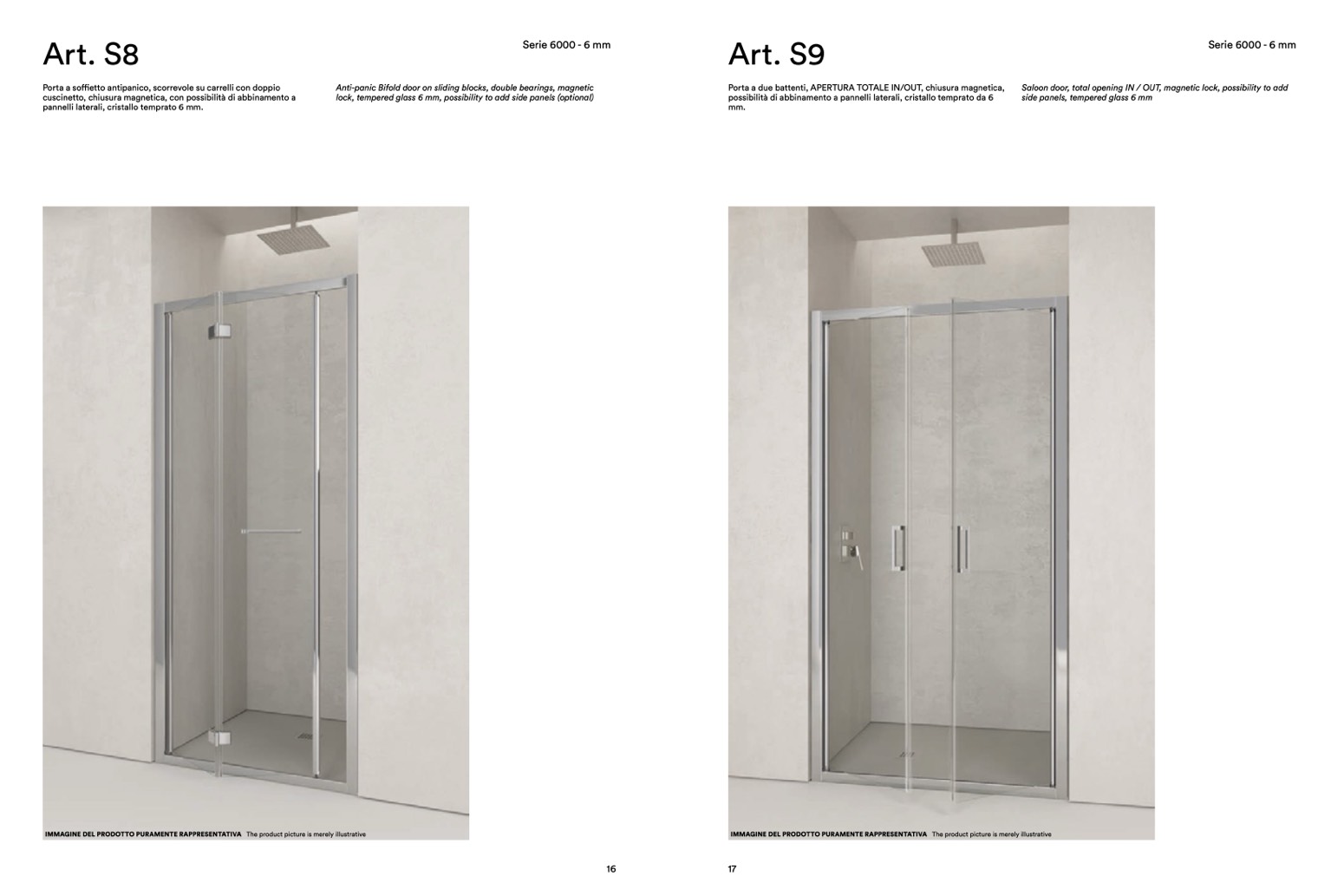 possibilità di abbinamento a pannelli laterali, cristallo temprato da 6